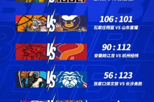 NBL常規(guī)賽第三輪今日戰(zhàn)罷,石家莊翔藍(lán)106-101險(xiǎn)勝山東蜜獾,安徽皖江龍90-112不敵杭州經(jīng)緯,張家口體文旅56-123不敵長(zhǎng)沙勇勝。