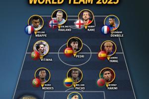 體育資訊12月28日訊 IFFHS(國際足球歷史和統(tǒng)計聯(lián)合會)近日公布了2025年年度最佳陣容評選結(jié)果,姆巴佩、哈蘭德、凱恩、登貝萊等11人入選。