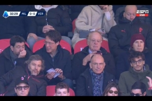 體育資訊12月29日訊 慢鏡頭報道,前尤文圖斯主席安德烈亞·阿涅利在圣西羅的看臺上觀看了AC米蘭對陣維羅納的比賽。
