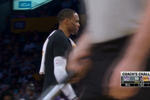 比賽最后時刻,威少向工作人員投訴場邊一位球迷罵他,工作人員隨后將這名球迷請離了球場。在解決了此事之后,加之比賽早已失去懸念,威少隨之直接離開了球場。