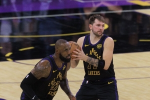 本場比賽,詹姆斯出戰(zhàn)28分鐘,13投11中,三分2中1,罰球1中1,得到24分3板5助2斷。東契奇出戰(zhàn)33分鐘,23投11中,三分14投5中、罰球8中7,砍下34分5籃板7助攻3搶斷1蓋帽5失誤。