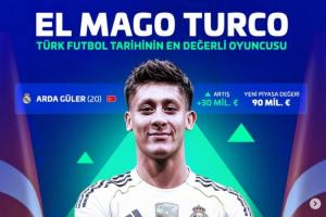 而居萊爾也是第一個(gè)達(dá)到9000萬歐元身價(jià)的土耳其球員,本賽季這位20歲的皇馬中場出戰(zhàn)25次,貢獻(xiàn)3球7助。