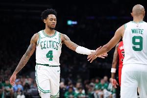 此役,西蒙斯全場15中6,三分球10投4中,砍下20分5籃板4助攻1搶斷,正負(fù)值高達(dá)+ 27。德里克·懷特出戰(zhàn)36分鐘,投籃16中8,三分10中2,罰球9中9,得到27分7籃板6助攻7蓋帽,蓋帽創(chuàng)生涯新高。