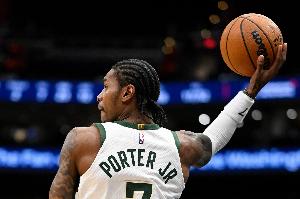 雄鹿球員小凱文·波特上半場(chǎng)狀態(tài)很出色,突破也是相當(dāng)靈動(dòng)犀利,在字母哥休息期間幫助球隊(duì)咬住比分。