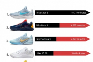 11月NBA球鞋上腳時(shí)間TOP10!科比霸榜前3 布克第4 前10有9款耐克