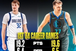 美媒對(duì)比了弗拉格和東契奇在菜鳥賽季球隊(duì)前35場(chǎng)比賽的數(shù)據(jù)對(duì)比,巧合的是兩人都在35場(chǎng)比賽里出戰(zhàn)34場(chǎng),數(shù)據(jù)如下: