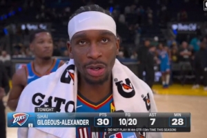 本場(chǎng)比賽,亞歷山大三節(jié)打卡,他出戰(zhàn)28分鐘,投籃20中10,三分球5中3,罰球7中7,拿到30分1籃板7助攻。