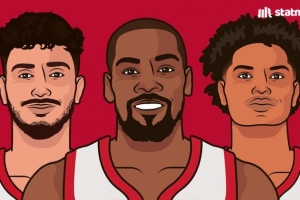 體育資訊1月3日訊 數據媒體StatMuse曬出了杜蘭特、申京和阿門三人本賽季至今的數據。