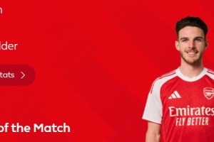 本場(chǎng)比賽賴斯梅開(kāi)二度,賽后他也當(dāng)選英超官方評(píng)選出的本場(chǎng)最佳球員。