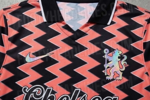 另一個(gè)突出的細(xì)節(jié)在于廣告贊助商區(qū)域,傳統(tǒng)的贊助商標(biāo)志被替換為手寫體風(fēng)格、“切爾西”字樣的單詞,經(jīng)典的流暢筆觸進(jìn)一步強(qiáng)化了球衣的復(fù)古身份。