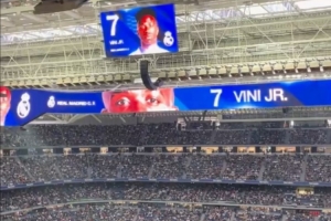體育資訊1月4日訊 皇家馬德里對陣皇家貝蒂斯的比賽正在進行當中,賽前伯納烏播報球員名字時,球迷們給予維尼修斯歡呼。