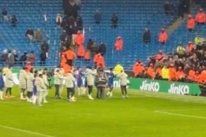 賽后,切爾西隊長里斯·詹姆斯走向切爾西球迷區(qū)域,呼吁球迷們?yōu)辂溈朔ㄌm及其團(tuán)隊送上掌聲。