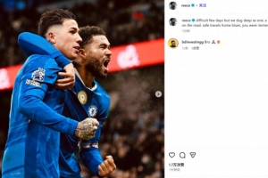 詹姆斯曬出自己和進(jìn)球功臣恩佐的慶祝照,并配文:“這幾天很艱難,但我們團(tuán)結(jié)一心,堅(jiān)持了下來。這是征途中的一處難關(guān)。一路平安,藍(lán)軍球迷們,你們今晚的表現(xiàn)太棒了!”