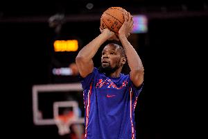 本場(chǎng)比賽,杜蘭特出戰(zhàn)38分30秒,21中9,其中三分12中2,罰球6中6,得到26分10板4助1帽。