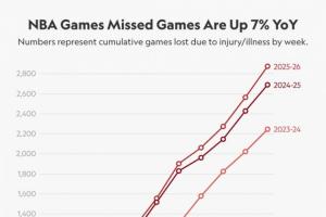 本賽季至今因傷缺席共2875場,比上賽季同期多7%,比上上賽季同期多28%