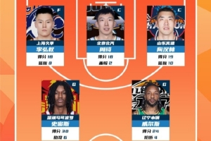 2025-2026賽季CBA聯(lián)賽常規(guī)賽第11輪結(jié)束較量,來自上海久事大鯊魚的李弘權(quán) ,北京首鋼的周琦,山東高速的陶漢林,深圳新世紀烈豹的史密斯和遼寧的威爾斯入選CBA聯(lián)賽常規(guī)賽第11輪最佳陣容!