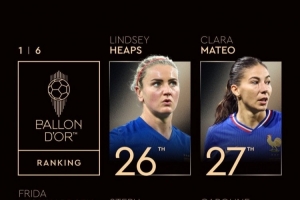體育資訊9月22日訊 金球獎(jiǎng)?lì)C獎(jiǎng)典禮,女足金球獎(jiǎng)排名第26-30名公布。