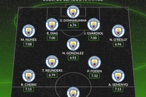 中場:賴因德斯(6.79分)、尼科·岡薩雷斯(6.92分)、福登(7.32分)