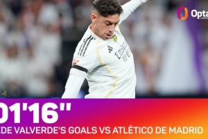 體育資訊1月9日訊 皇馬在西超杯半決賽1-0領(lǐng)先馬競,巴爾韋德在1分16秒為球隊(duì)任意球先拔頭籌。