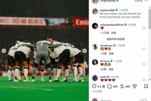 利物浦隊(duì)長范戴克社媒曬出比賽照片,配文:“我們是團(tuán)隊(duì),是朋友,但最重要的是,我們是一家人?!?/p>