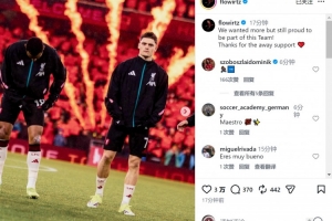 此役維爾茨為利物浦踢滿全場(chǎng),賽后他在社交媒體上曬出比賽照片,配文:“我們想要更多,但仍然為能成為這支球隊(duì)的一份子感到自豪!感謝球迷在客場(chǎng)的支持?!?/p>