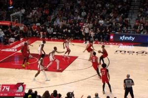 GIF-楊瀚森拿到前場板,單手一撥助攻樂福三分命中!