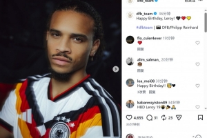 德國隊官方社媒曬出薩內(nèi)的照片,配文:“生日快樂,勒魯瓦!”