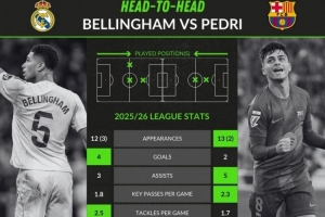 體育資訊1月12日訊 皇馬和巴薩將在本輪西超杯決賽相逢,whoscored也對比了兩隊中場核心的西甲關鍵數(shù)據(jù)。