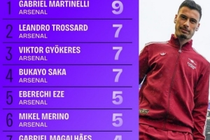 以下為本賽季各項賽事阿森納球員進球榜: