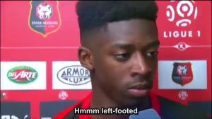 登貝萊:“是的,我更偏向于慣用左腳?!?/p>