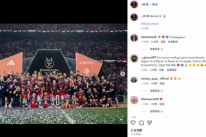 他也在賽后通過社媒曬出全隊捧杯合照,并配文:“我們做到了!??@巴塞羅那俱樂部”。
