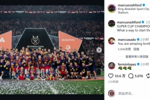 這是拉什福德加盟巴薩以來贏得的首個(gè)冠軍,他在社交媒體上曬出全隊(duì)與獎(jiǎng)杯的合照,配文:“西超杯冠軍!多么完美的新年開局!”