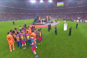 記者透露,皇馬方面表示是西班牙足協(xié)人士要求他們離開頒獎現(xiàn)場的區(qū)域,因?yàn)樗麄儞踝×藬z像機(jī)的鏡頭,因此他們沒有為巴薩列隊(duì)。