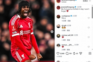 弗林蓬社媒曬出慶祝進(jìn)球的照片,配文:“我在安菲爾德的首粒進(jìn)球,我永遠(yuǎn)不會(huì)忘記的一天?!?/p>