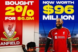 2011年,詹姆斯投資650萬美元獲得利物浦足球俱樂部2%的股權(quán),2021年3月,詹姆斯擴(kuò)大初始投資,將持有的利物浦股份兌換為芬威體育集團(tuán)的股份,占比約1%。目前,芬威體育集團(tuán)的市值已超過100億美元。