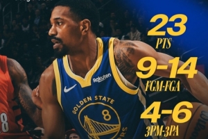 本場比賽,勇士球員梅爾頓,他替補(bǔ)出戰(zhàn)僅18分鐘,14中9,三分6中4,罰球1中1怒轟23分2籃板1助攻,正負(fù)值+20!