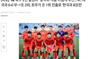韓媒標(biāo)題為:韓國足球兩度飲恨 與中國對決遺憾落空(中國0-0戰(zhàn)平泰國獲小組第二 澳大利亞頭名晉級(jí)將與韓國會(huì)師八強(qiáng)戰(zhàn))