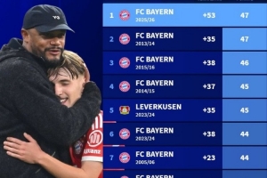 體育資訊1月15日訊 德轉(zhuǎn)統(tǒng)計表明,孔帕尼帶領(lǐng)拜仁上半賽季的成績創(chuàng)造了德甲歷史。