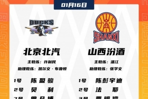 體育資訊1月16日訊 今晚19:35,北京主場(chǎng)迎戰(zhàn)山西,賽前大名單出爐。