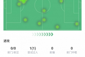 嘗試過(guò)人1次并成功、丟失球權(quán)5次、越位1次