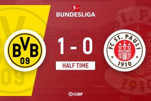體育資訊1月17日訊 北京時(shí)間1月17日22:30,德甲第18輪,多特蒙德坐鎮(zhèn)伊杜納信號(hào)公園球場迎戰(zhàn)圣保利。上半場,布蘭特射門被瓦爾門線解圍,施洛特貝克、阿德耶米犯規(guī)染黃,補(bǔ)時(shí)階段,布蘭特破門打破場上僵局。半場戰(zhàn)罷,多特蒙德暫1-0圣保利!