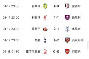 體育資訊01月18日訊 英超第22輪,阿森納0-0客平森林。