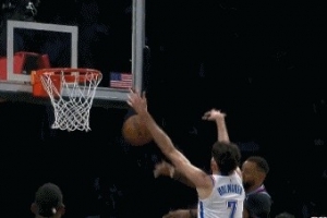 GIF-鮑威爾繞掩護突破上籃被霍姆格倫攔網(wǎng)式封蓋出界