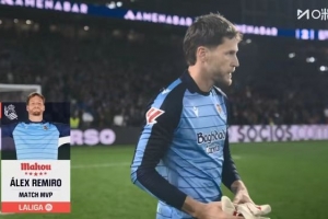 體育資訊1月19日訊 西甲第20輪比賽,皇家社會(huì)主場2-1擊敗巴薩,皇家社會(huì)門將雷米羅當(dāng)選本場比賽最佳球員。