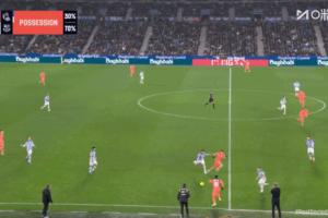 西甲第20輪,巴薩客場1-2不敵皇家社會,比賽上半場第17分鐘亞馬爾貢獻了一次絕妙的盤帶表演。