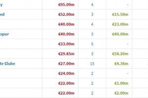 截至目前,曼城已簽下塞梅尼奧和格伊,分別花費(fèi)7200萬歐和2300萬歐。冬窗轉(zhuǎn)會(huì)支出前十英超占了5席。