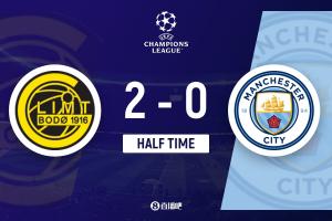 體育資訊1月21日訊 北京時(shí)間1:45,歐冠聯(lián)賽階段第7輪博德閃耀vs曼城,比賽在阿斯米拉體育場打響!上半場,阿萊恩被斷送禮,布隆伯格兩送助攻,霍格2分鐘梅開二度。半場結(jié)束,曼城暫0-2落后博德閃耀。