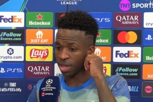 維尼修斯:“我也是人,當(dāng)然會(huì)因?yàn)槿藗兊难哉摱械诫y過。但每隔兩三天,我們就有新的機(jī)會(huì)展示我們所做的一切?!?/p>
