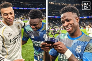 體育資訊1月21日訊 據(jù)轉(zhuǎn)播方DAZN報道稱,在皇馬6-1擊敗摩納哥后,姆巴佩是最先祝賀維尼修斯獲得全場MVP的隊友。