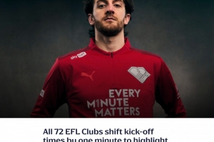體育資訊1月21日訊 EFL官方消息,英格蘭72家俱樂部調(diào)整開球時間,強調(diào)CPR的重要性。